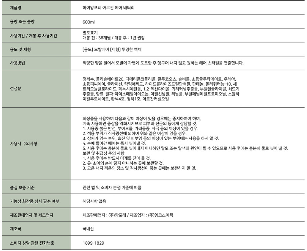 하이앙포레 아르간 헤어배터리(600ml 대용량)