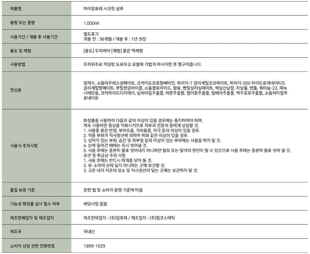 하이앙포레 시크릿 샴푸(1000ml)